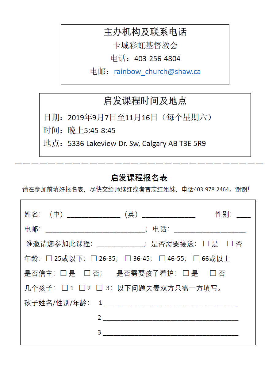 启发课程包括一系列探讨人生意义和信仰的课题。 每次讲解课题后,我们都会分组讨论当中所引发的问题 。